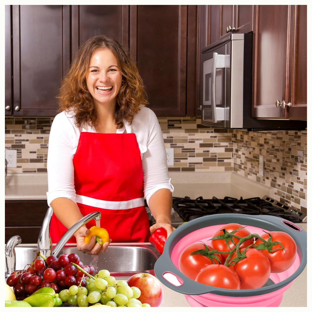 · Transforma tu experiencia en la cocina con nuestro Colador Rosa Plegable + Cesta. Estas dos piezas versátiles no solo simplificarán tu proceso de preparación de alimentos, sino que también añadirán un toque de practicidad dando eficiencia a tu espacio culinario.
