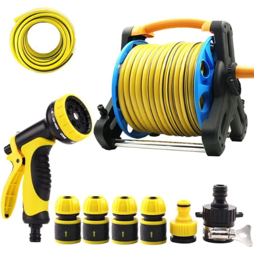 - Adaptabilidad Versátil: Con una longitud ajustable de 15 metros, esta manguera se adapta fácilmente a cualquier tamaño de jardín, desde espacios compactos hasta áreas más amplias.