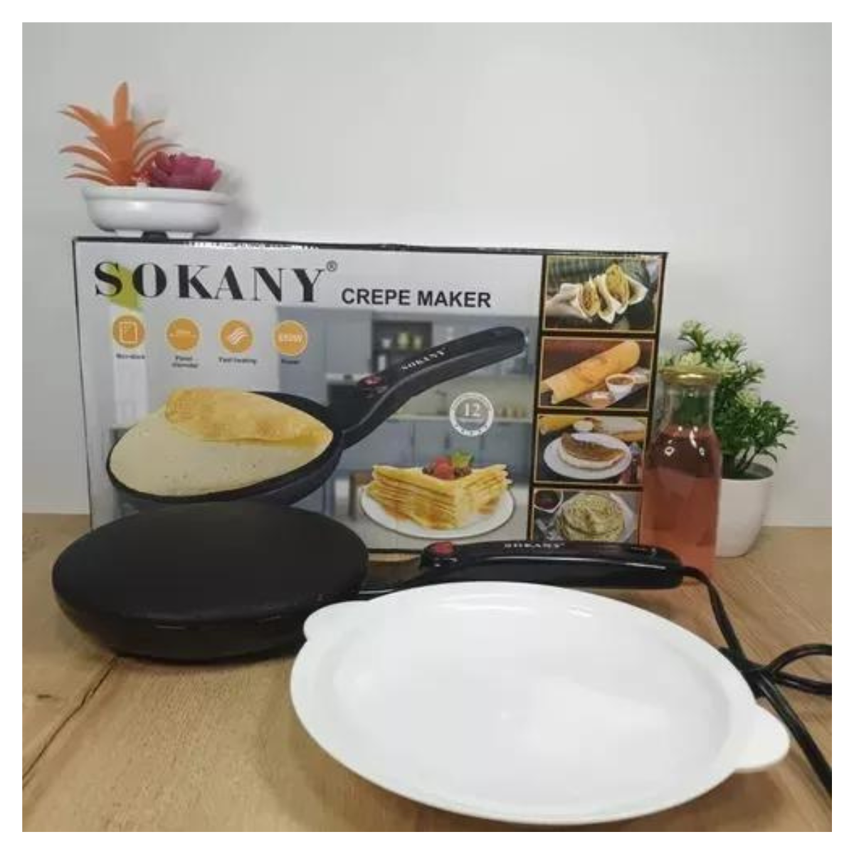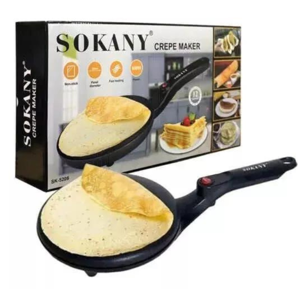 - Haga las Crepes en Segundos: Con nuestra panquequera eléctrica, el proceso de hacer crepes se simplifica enormemente. Su diseño estilo sartén completo y mango largo facilitan la cocción rápida y uniforme.