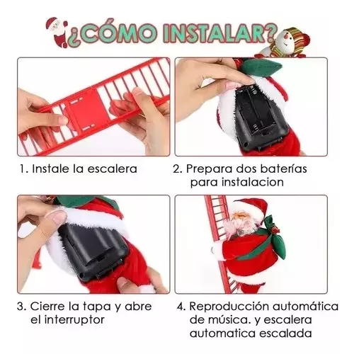 Esta es una decoracion unica de escalada perfecto para decorar un ambiente navideño en el hogar Nota: requiere 2 pilas AA (no incluidas) y su interruptor esta en el trasero de santa